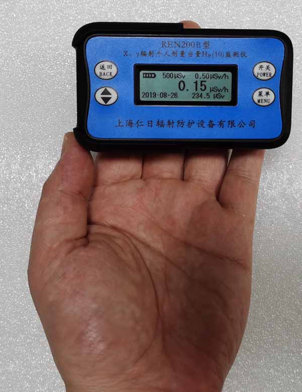 REN200B型X、γ辐射个人剂量当量HP(10)监测仪(简称:个人剂量报警仪)内置高量程盖格计数管为探测器,主要用来监测各种放射性工作场所的X、γ以及硬β射线的辐射,具有较宽的测量范围。能显示工作场所的剂量当量率和累积剂量,更换电池时,日期及累积数据能永久保存。可选配RenRiPersonal个人剂量管理软件,该软件可存储多个人的历史数据,能记录日累积、月累积、年累积、辐照时长、计算平均剂量率、扣除或不扣除本底辐射,且以文字和图谱的方式展现数据。广泛应用于核电站、加速器、钢铁、化工、同位素应用、工业X、γ无损探伤、放射医疗、钴源治疗、γ辐照、放射性实验室、核设施周围环境监测等领域中的工作人员进行个人安全防护监测及放射性提示。